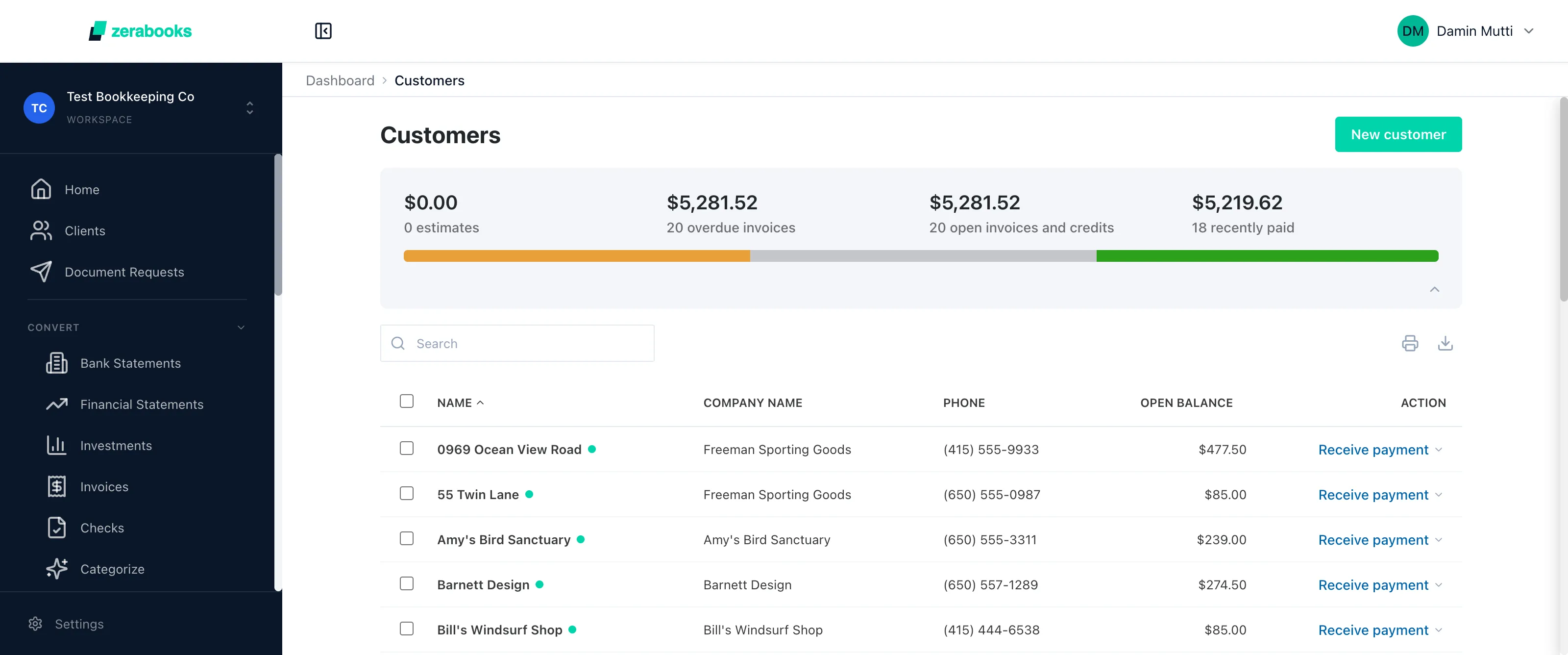 Create invoices, track customer payments, convert estimates, and manage AR aging. Zera handles your entire billing workflow with AI-drafted invoices and automatic payment application.